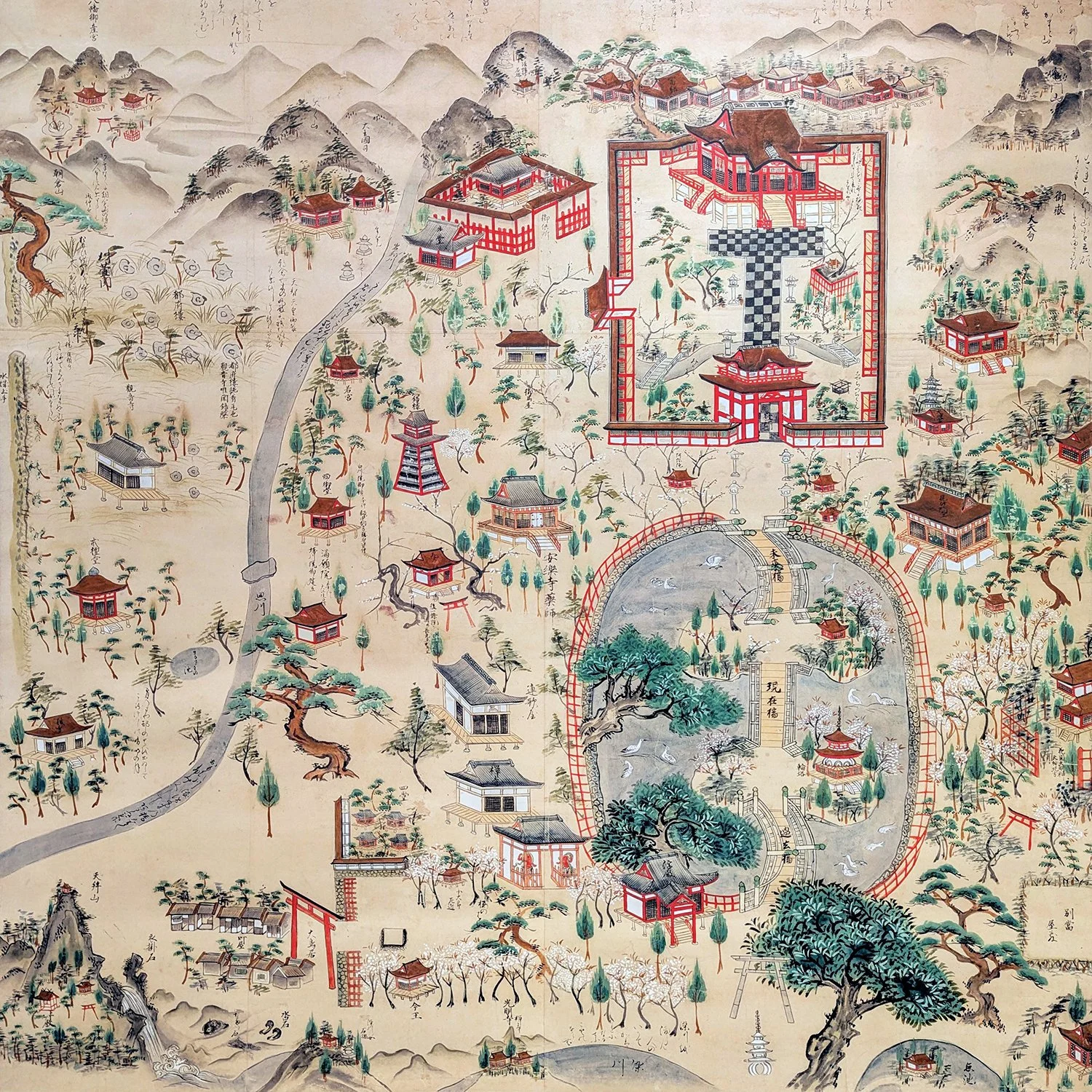 The Heian Period scholar and statesman, Sugawara no Michizane (菅原 道真), is enshrined here as Tenjin (天神), a deity of learning, culture, and the arts. The cult is especially popular with students praying for exam success.